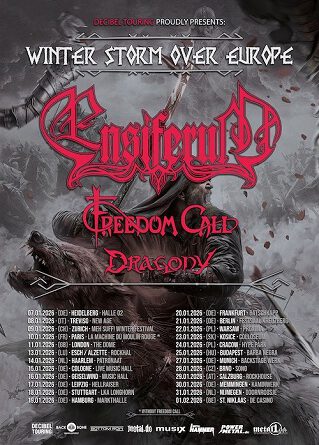 WINTER STORM OVER EUROPE: Ab Mitte Januar 2026 machen die Folk-Metaller von ENSIFERUM zusammen mit FREEDOM CALL & DRAGONY die Bühnen in Europa und Australien (dazu einige Festivals) unsicher …