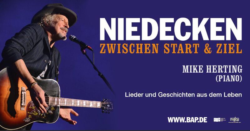 2026 kann man mit Fug und Recht als ein „Niedecken-Jahr“ bezeichnen. Nicht nur dass seine Band BAP fünfzigjähriges feiert und aus diesem Anlass ab Herbst auf große Jubiläumstour geht, auch der Künstler selbst darf in diesem Jahr 75 Kerzen auf dem Geburtstagskuchen auspusten. Was man kaum glauben mag, wenn man ihn immer noch live auf den Bühnen dieses Landes erlebt. Und weil jemand wie Niedecken auch sonst viel zu erzählen hat, bereist er die deutschen Bühnen vor der großen Jubeltour mit seiner Band noch schnell mit einem brandneuen Soloprogramm „Zwischen Start & Ziel“. Begleitet wird er dabei von dem Pianisten Mike Herting. Zusammen performen sie sehr persönliche, autobiografische Lieder aus dem riesigen Fundus von Wolfgang Niedecken. Dazwischen liest Niedecken die ein oder andere Passage aus seinen erschienenen Büchern.