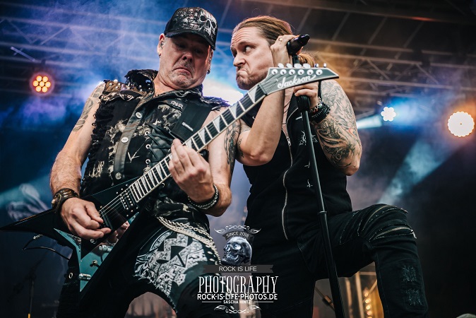 Die Texte und das gesamte Gesangsarrangement, also Main-Vocals und die Chöre, schreibe ausschließlich ich. Die Musik wird zum Großteil von den beiden Gitarristen, Tobi oder Volker, geschrieben, wobei sich Bernd, unser Drummer, inzwischen schon früher ins Songwriting mit einbezieht und seine Ideen einbringt.