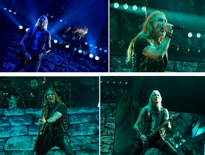 Nach einer halbstündigen Umbauphase starteten dann die Power/Heavy Metaller von Hammerfall mit „Avenge the Fallen“, „Heeding the Call“ und „Any Means Necessary“ mehr als superb in den Abend. Im Nu hatten sie die Halle hinter sich gebracht, die Fäuste wurden gen Himmel gereckt und die Fans mussten aufpassen, dass sie keine Nackenschmerzen vom Headbangen bekamen. Sänger Joacim Cans war gut bei Stimme, Oscar Dronjak, Gründer und Leadgitarrist performte & poste wie immer und auch der Rest der Band „hatte richtig Bock“ an diesem Abend. Weitere Highlights neben dem Eröffnungs-Dreier waren „Hammer Of Dawn“, „Last Man Standing“ und „We Make) Sweden Rock“. Und da sowohl Wind Rose als auch Hammerfall extrem gut ablieferten und die Messlatte für den Main-Act Powerwolf schon sehr hochgelegt hatten, stellten sich nicht wenige die Frage, „schaffen die Mannen um Sänger Attila Dorn es wirklich, diese hoch liegende Latte zu überspringen“? Um es vorwegzunehmen, sie schafften es, und wie!