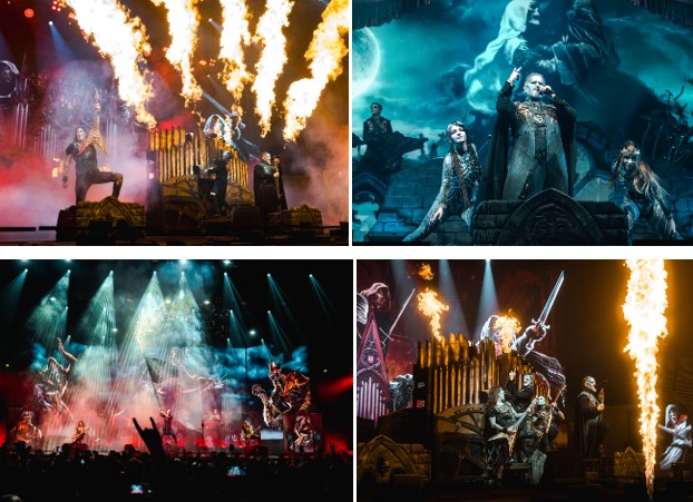 Um 21 Uhr erlosch das Deckenlicht der großen Halle ein letztes Mal und Powerwolf eröffneten mit ordentlich Pyros und „Bless ’em With the Blade“ ihren zweistündigen Gig. Es folgte ein Konzert, der jedes Metal-Herz schneller hat schlagen lassen und wirklich Maßstäbe setzte. Es war eine rundherum gelungene Metal-Messe, bei der sowohl die Setlist als auch das Optische in Form von Pyros und Feuer komplett überzeugten, Darüber hinaus war auch die Band (trotz kurzfristigen Wechsels an der Gitarre) auf dem Punkt und ständig auf der Bühne aktiv und unterwegs. Und über die Stimme von Attila Dorn braucht man eh keine Lobeshymnen mehr schreiben, Outstanding! Subjective Highlights der zwei Stunden waren „Army of the Night”, „Demons Are a Girl’s Best Friend”, „Joan of Arc”, „We Drink Your Blood” und das abschließende „Werewolves of Armenia”! Wenn man nach der Nadel im Heuhaufens suchen möchte, dann sind es eventuell die immer wiederholten Anfeuerungen Atilas in Richtung Publikum, immer wieder und laut Lärm zu machen. Ab und an passt es, aber wenn es dann mehr als gefühlt zwanzigmal ist, dann wäre eventuell ein Song mehr auf der Setlist auch eine gute Alternative. Ansonsten kann man es nicht besser als ein Fan nach dem Konzert beschreiben: Geile Show!!! Geile Bühnenbilder! Alle drei Bands waren mega cool und alle haben mit uns agiert! Man fühlte sich dabei, obwohl man im Rang saß, man hörte alles, verstand alles und sah alles!